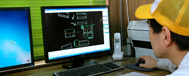 レーザー加工機導入と同時にコンピュータによる設計を他社に先駆けて開始いたしました。